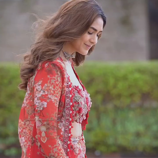 Getting you the best for your wardrobe fashion game hold your heart š Here's Presenting You A Perfect Digital Print Jacket Blouse And Plazo Set For The Wedding and Festive Season Perfect Top with wide flowy Pantsš
