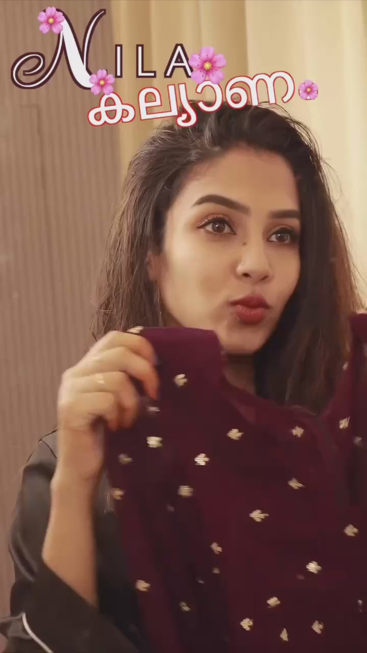 Stay Effortlessly Beautiful In Our Emb Anarkali A Perfectly Enhanced With Wine & Golden Thread Sequence Work All Over The Gown The Outfit Comes Paired With A Dupatta With CutWork broach ♥️✨
